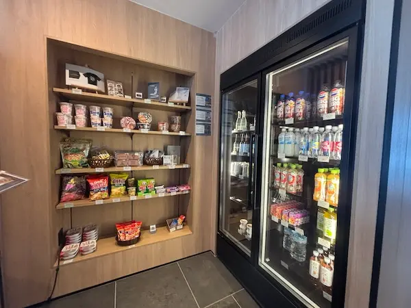 フロントの向かいには売店があります。車で2分程度のところにコンビニはありますが、買い忘れたものやすぐに欲しい時などに便利。